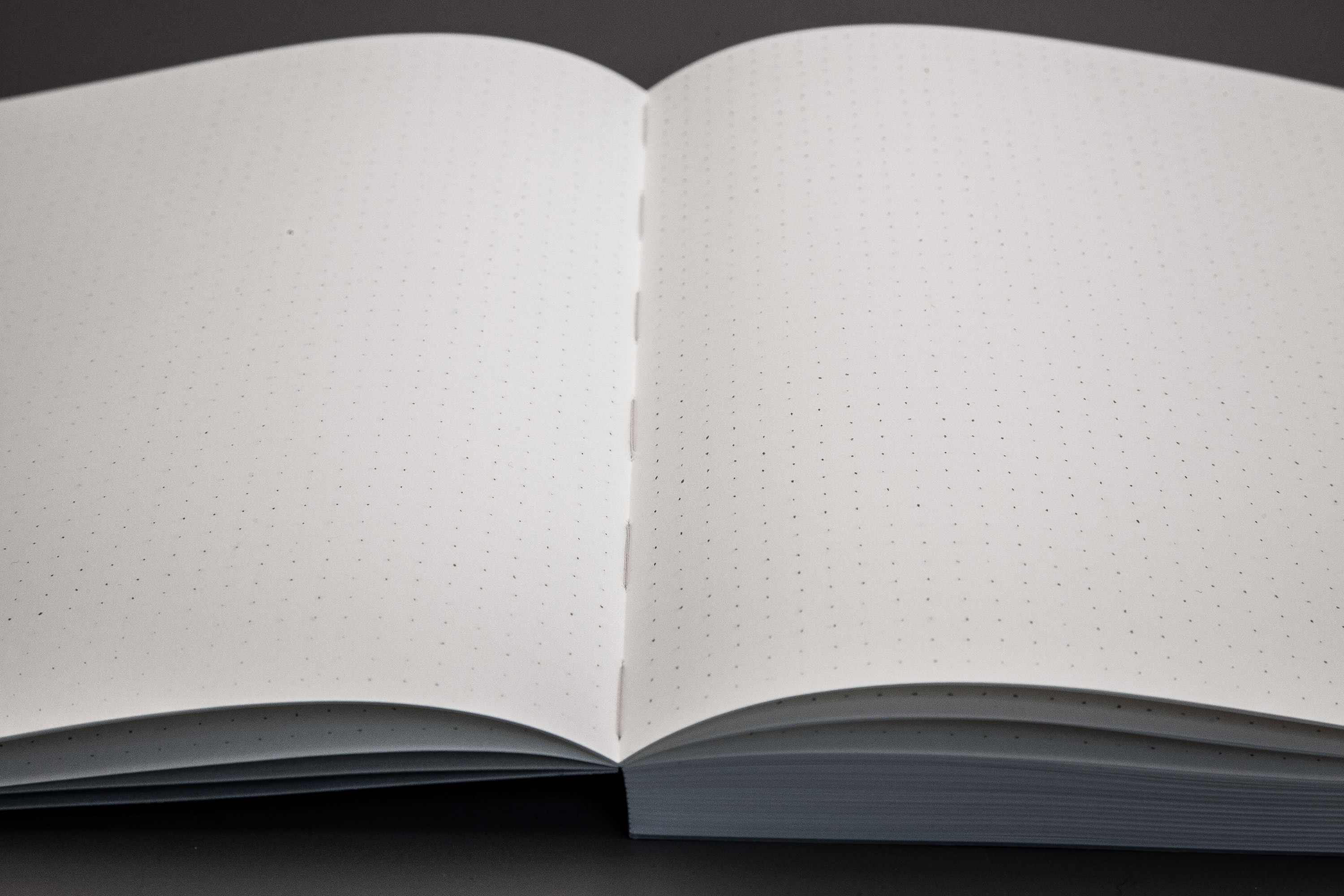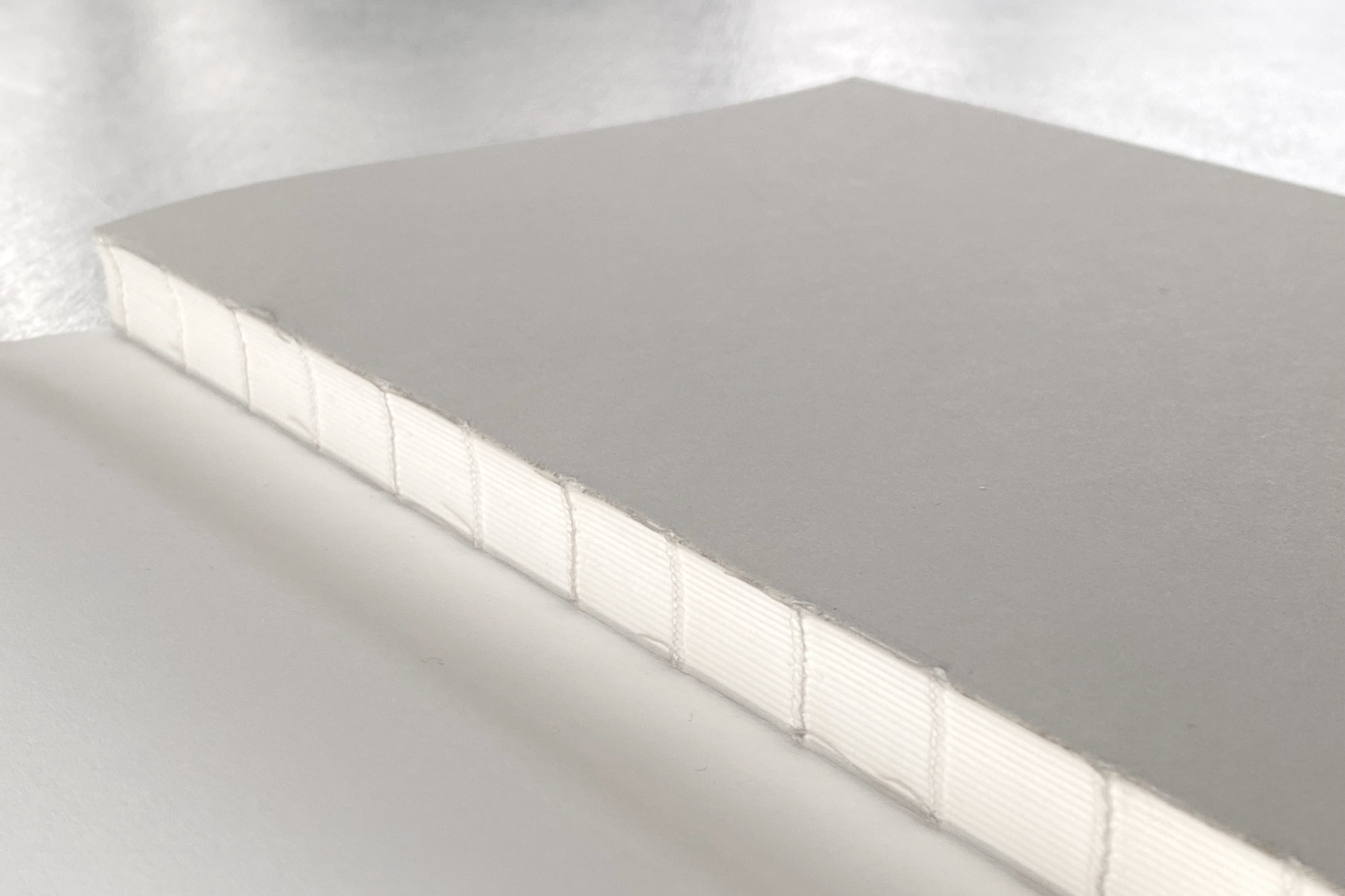 224 Seiten mit Punktraster, offene Fadenheftung, Schutzumschlag mit individuellem Titel, von Hand nummeriert