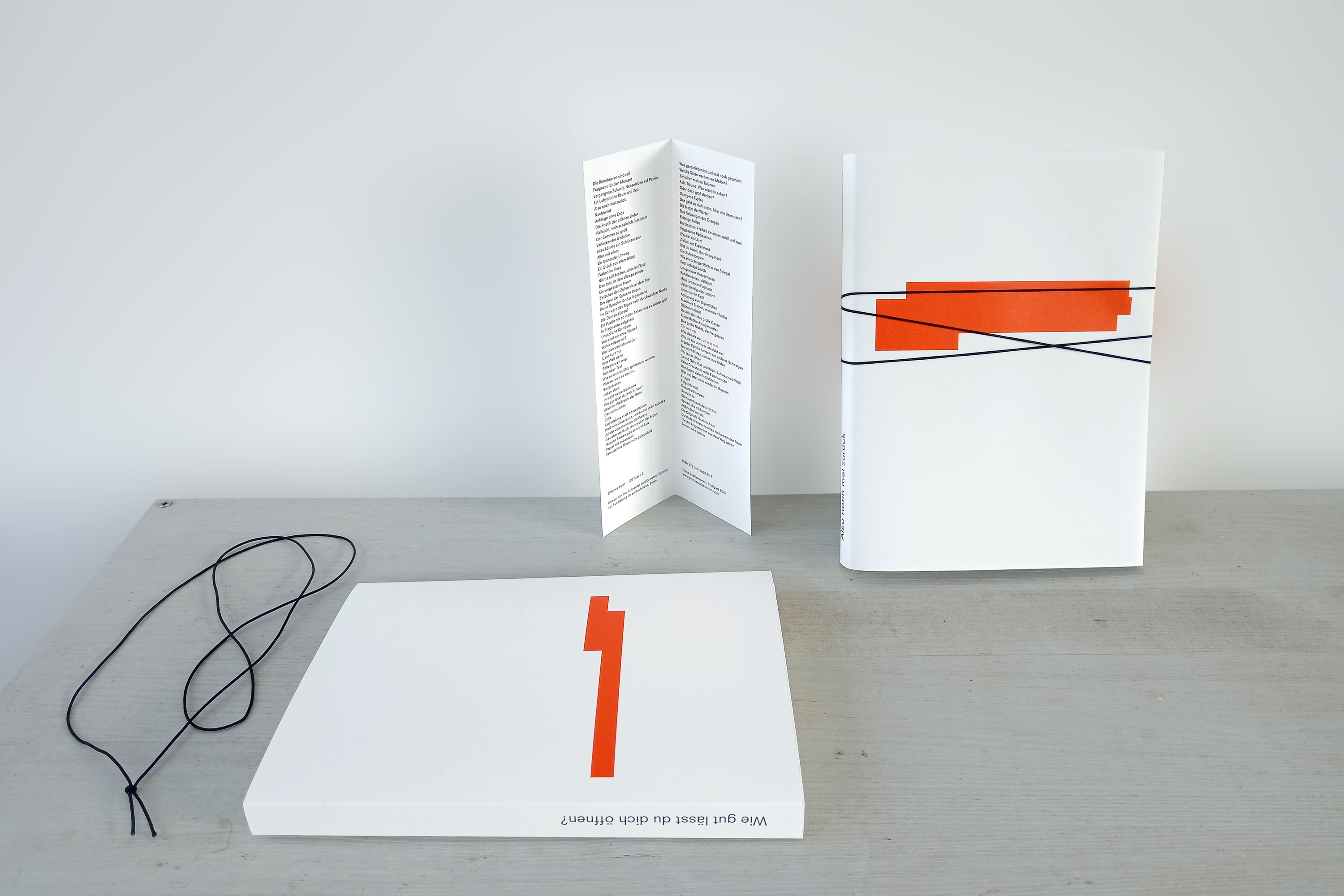 Seit Herbst 2024 führen Christina Schmid und Ina Schneider einen Dialog zu gemeinsamen Themen wie Papier, Faltung, Buch, Zeit, Ort und Veränderung. Ausgangspunkt waren Texte von Christina Schmid, in denen Ina Schneider spontan ›ihre‹ Zeilen orange markierte – Worte, die zu ihr sprachen. Diese Textfragmente bildeten den Kern ihrer gemeinsamen Ausstellung in der Gedok-Galerie.